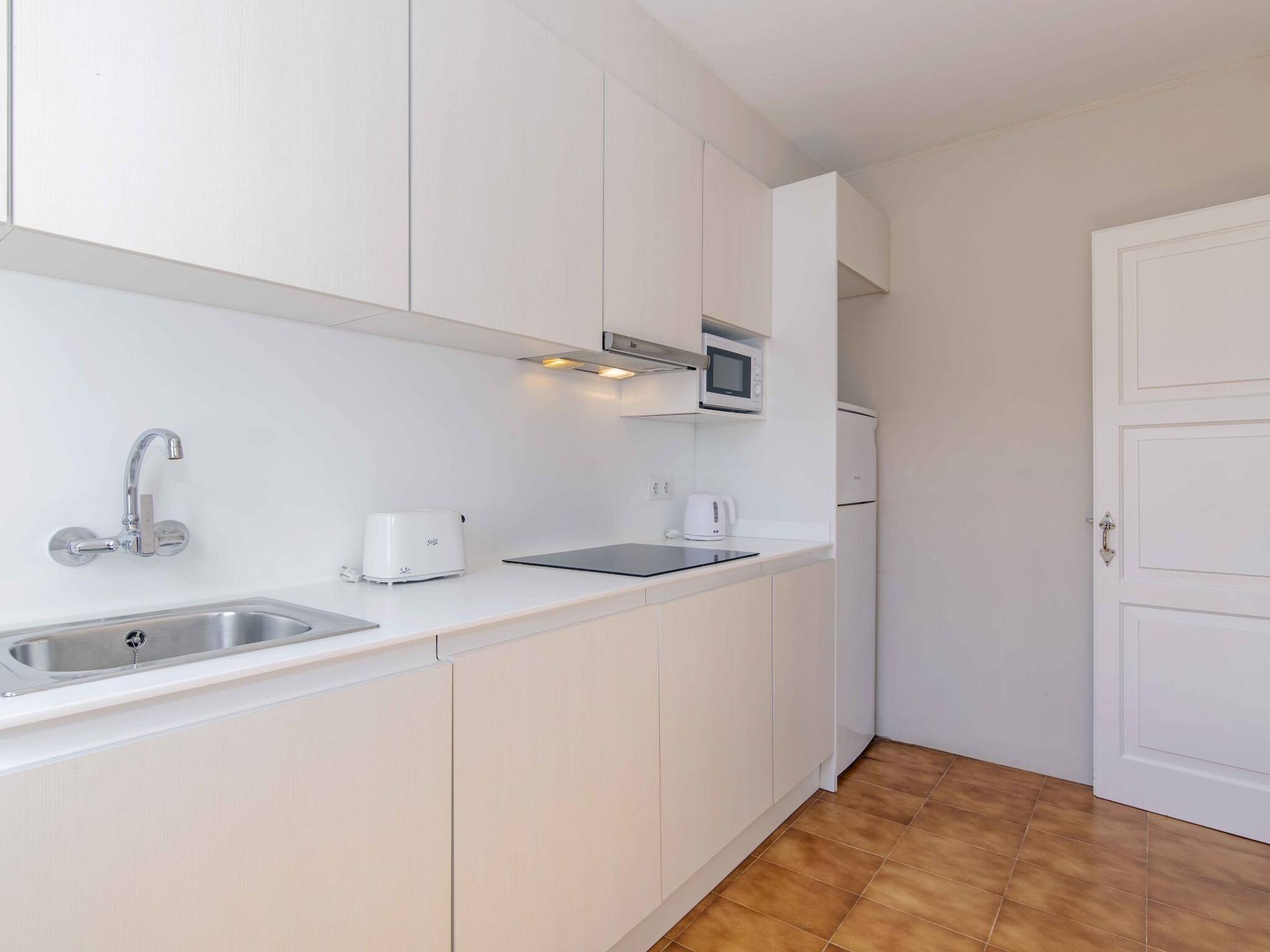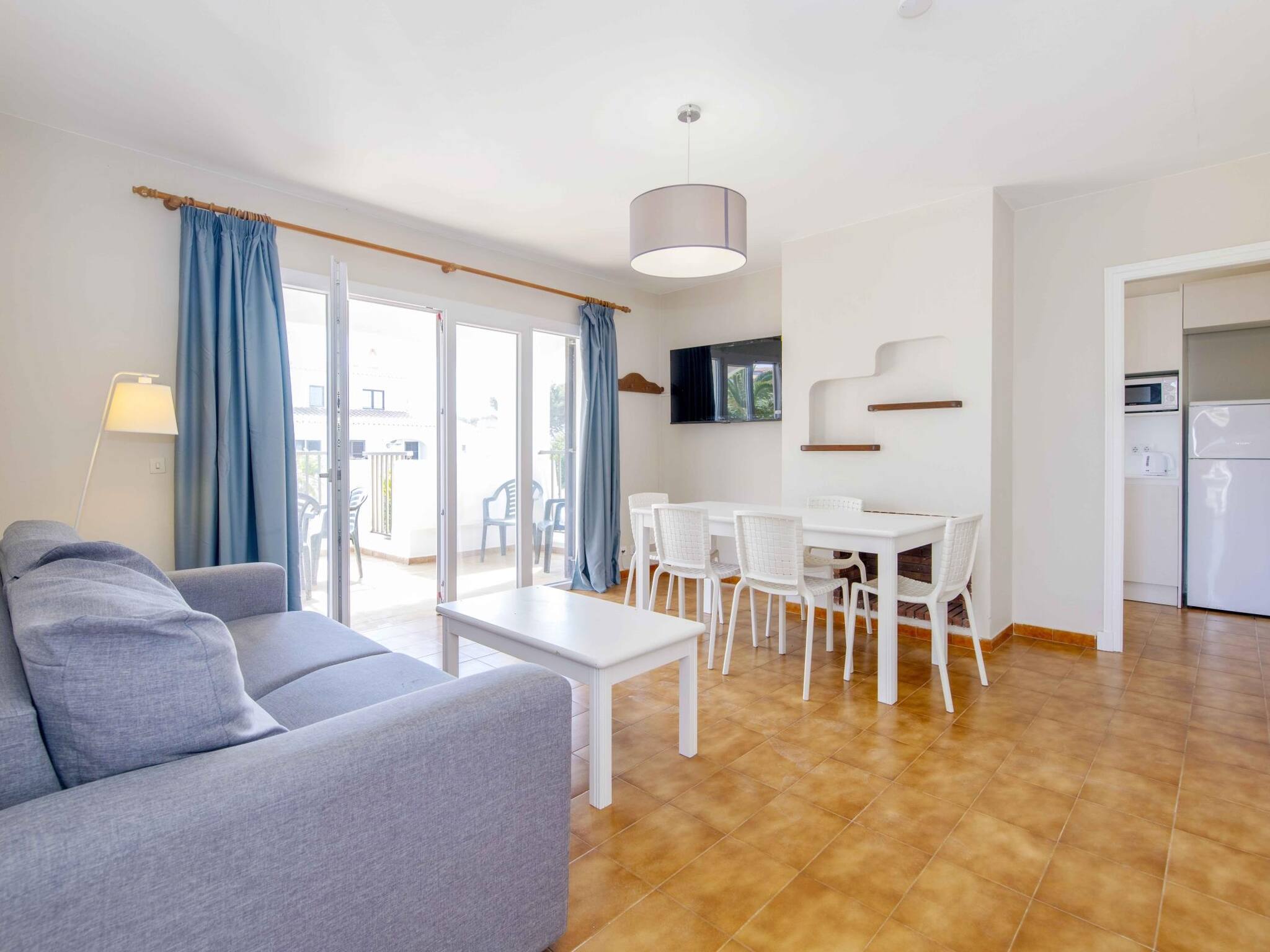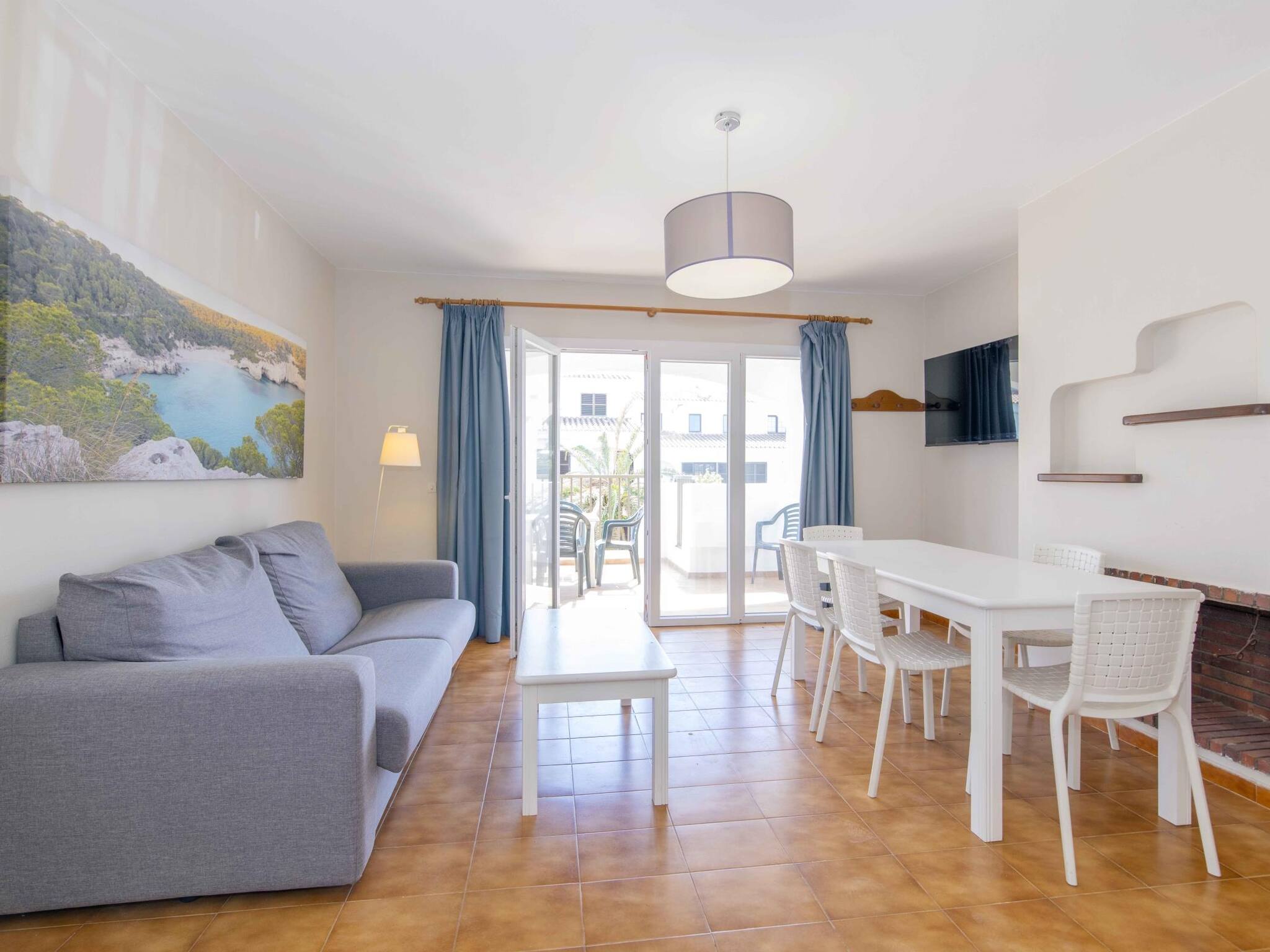 Situado en el complejo Siesta Mar, con dos piscinas con toboganes, zona de tumbonas, bar-restaurante y recepción. A pocos pasos de supermercados, farmacia y restaurantes, a 10 min caminando de la playa de Cala en Porter y 10 min en coche del aeropuerto.