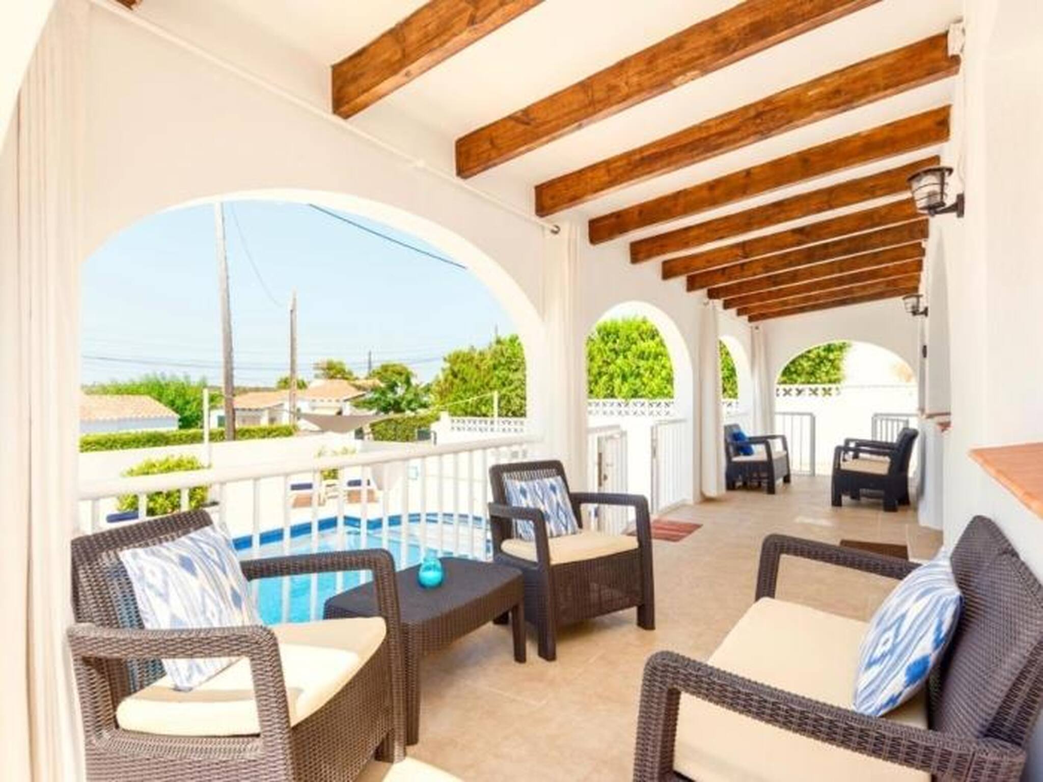 En el exterior, Villa Valeria ofrece espacios ideales para relajarse y disfrutar del aire libre, como su balcón o patio privado, zona de barbacoa y jardín amueblado, perfectos para largas sobremesas y noches de verano. Además, la villa cuenta con WiFi y televisión, así como todo lo necesario para que te sientas como en casa desde el primer momento.
