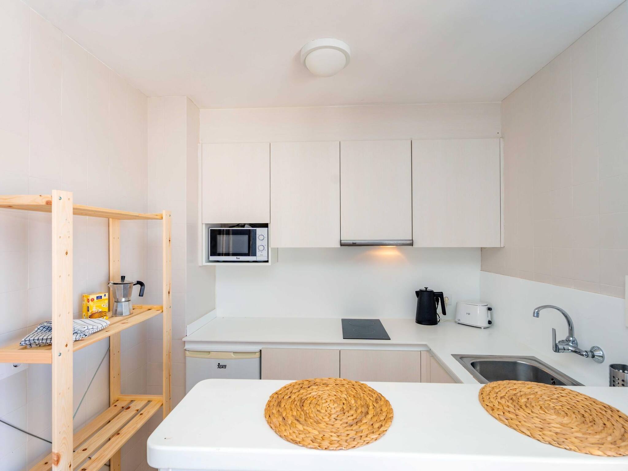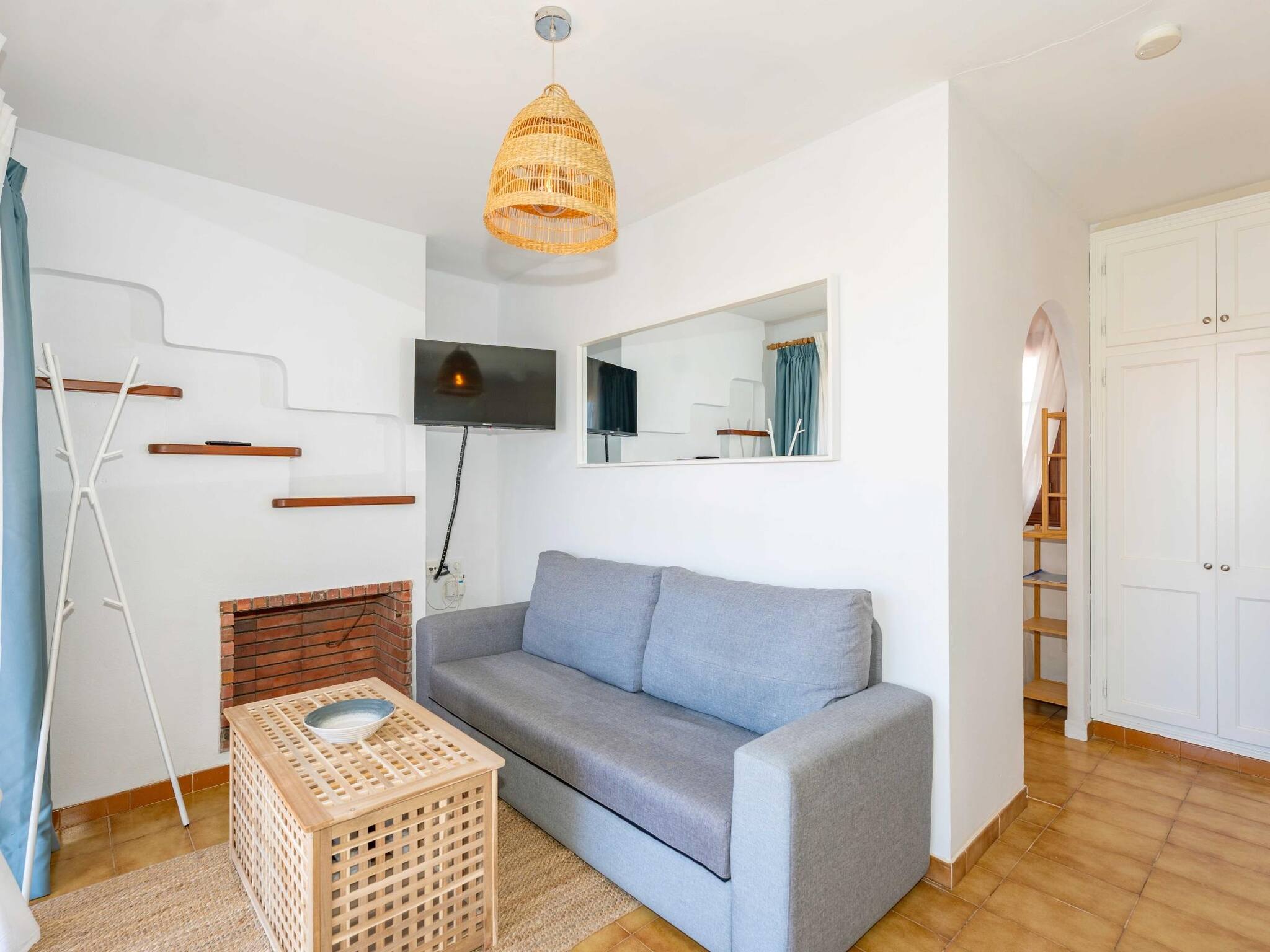 Sein modernes und sorgfältiges Design schafft eine helle und einladende Atmosphäre, ideal für Paare oder entspannende Auszeiten. Das Schlafzimmer bietet ein komfortables Doppelbett, während der Wohn- und integrierte Küchenbereich Weite und Funktionalität bieten und gleichzeitig einen praktischen und eleganten Raum schaffen.