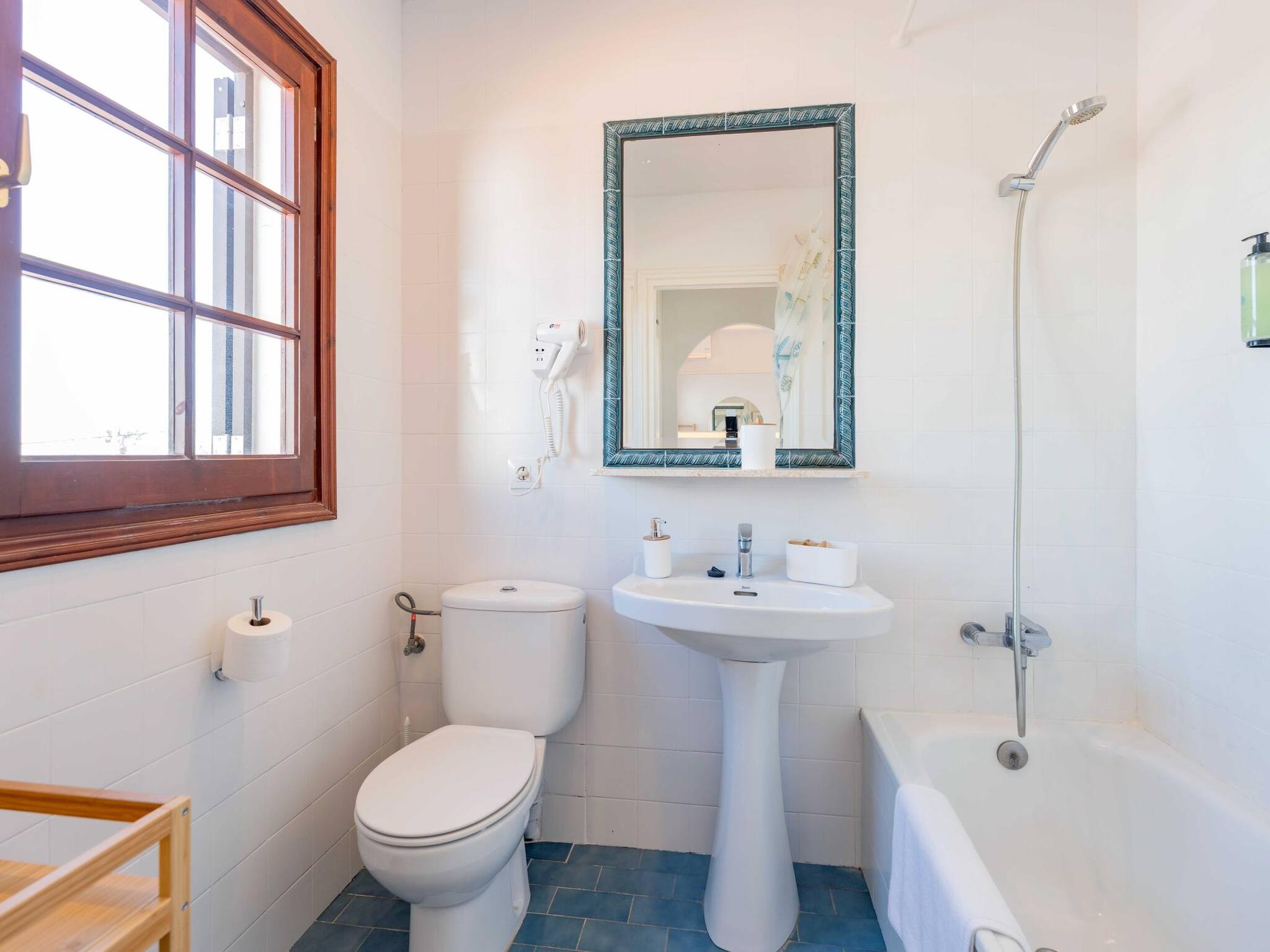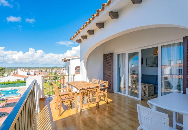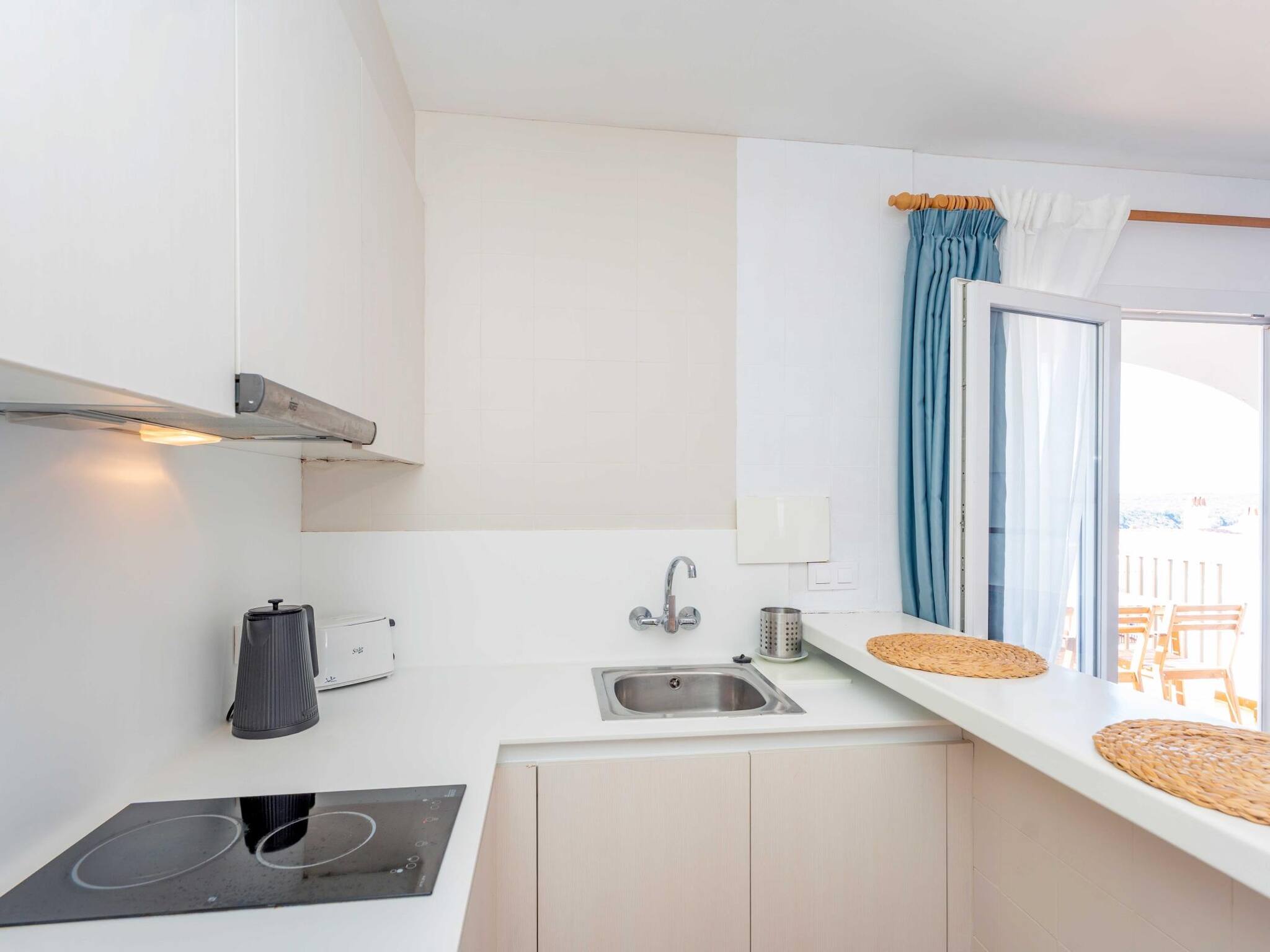 Gelegen im Siesta Mar Komplex, mit zwei Rutschen-Pools, Liegebereichs, Bar-Restaurant und Rezeption. Nur wenige Schritte von Supermärkten, Apotheke und Restaurants entfernt, 10 Minuten Fußweg zum Strand von Cala en Porter und 10 Minuten mit dem Auto vom Flughafen.