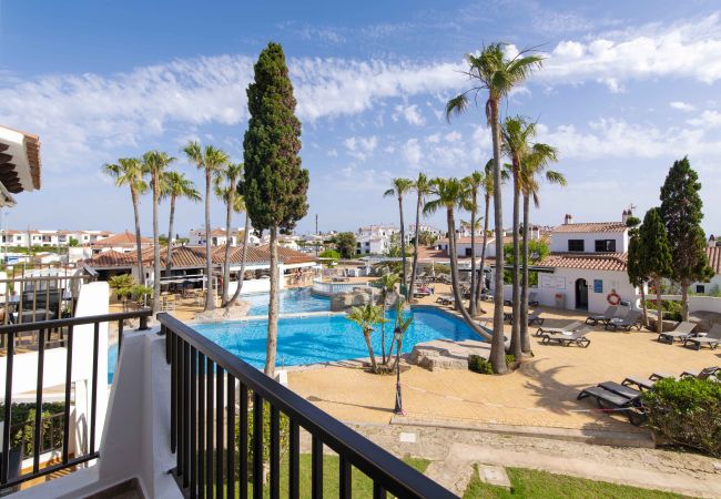 Located in the Siesta Mar complex, with two swimming pools with slides, sunbed area, bar-restaurant and reception. A few steps from supermarkets, pharmacy and restaurants, 10 minutes walking from Cala en Porter beach and 10 minutes by car from the airport.