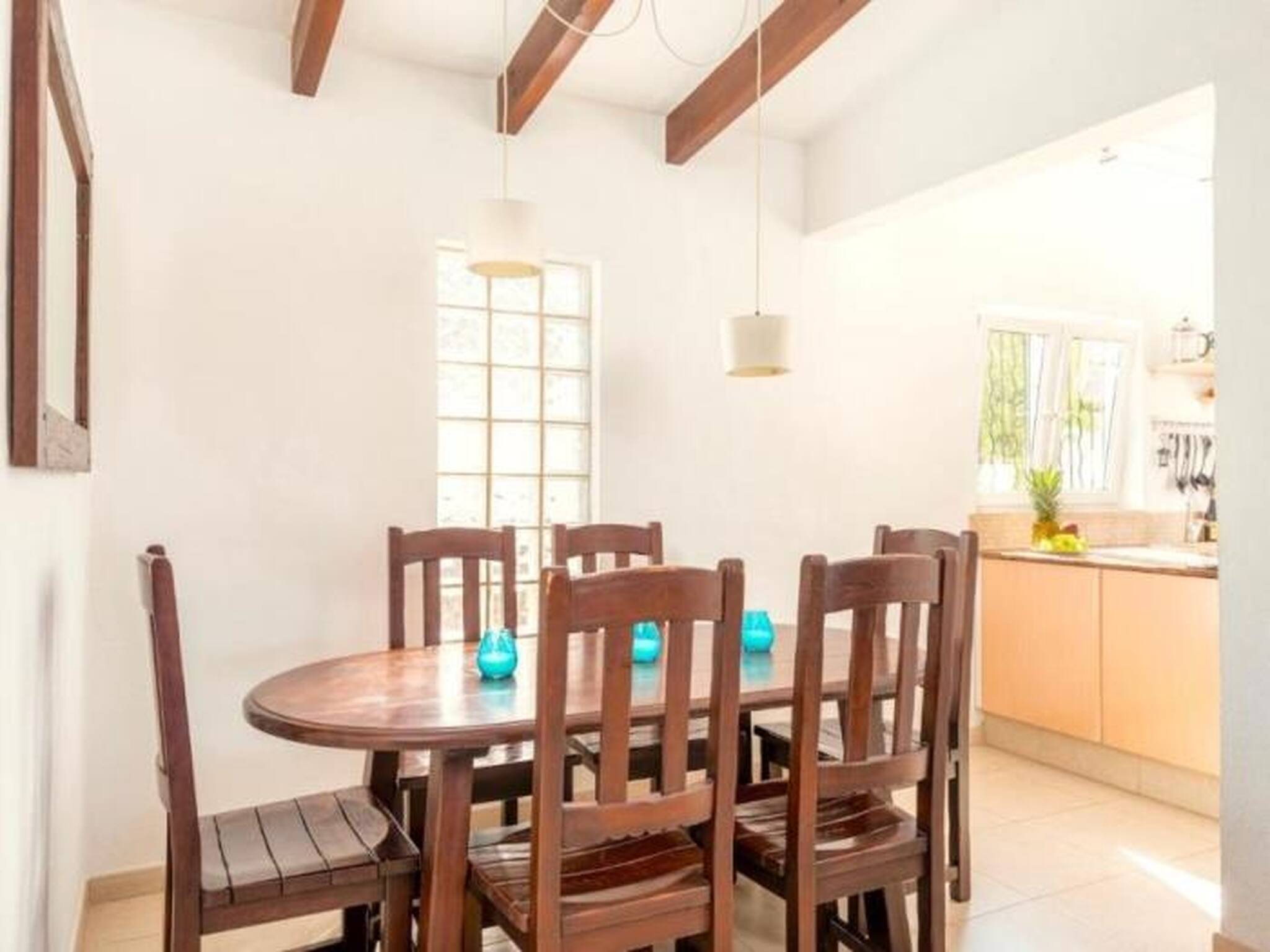 The fully equipped kitchen invites you to enjoy the pleasure of cooking during holidays. It has a fridge, freezer, oven, microwave, washing machine, coffee maker, toaster and all the necessary kitchenware to prepare and share delicious meals in good company.