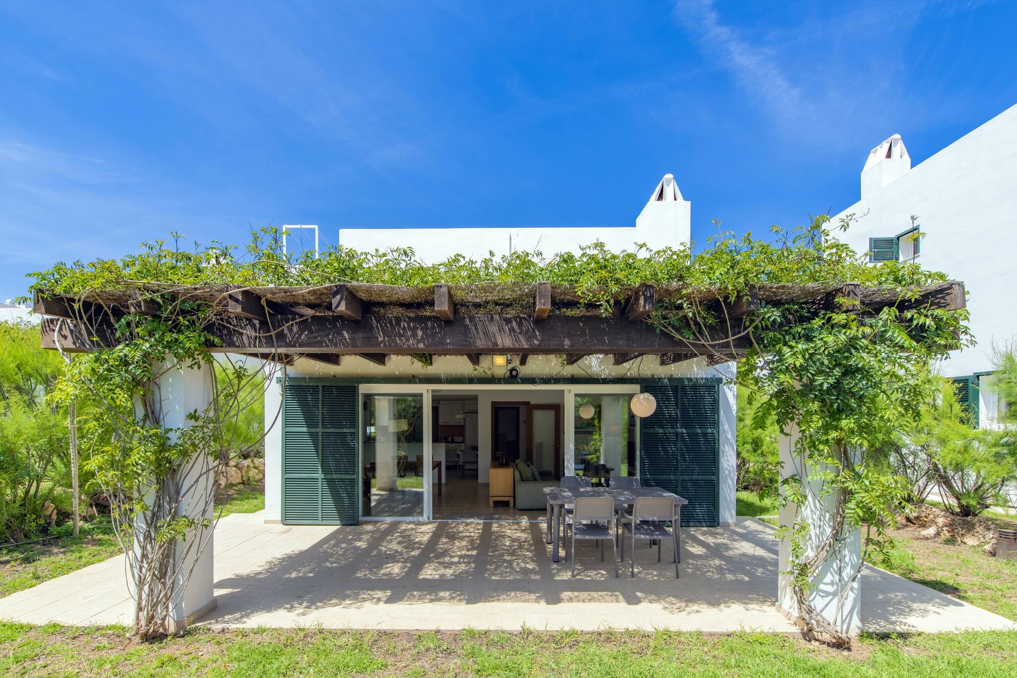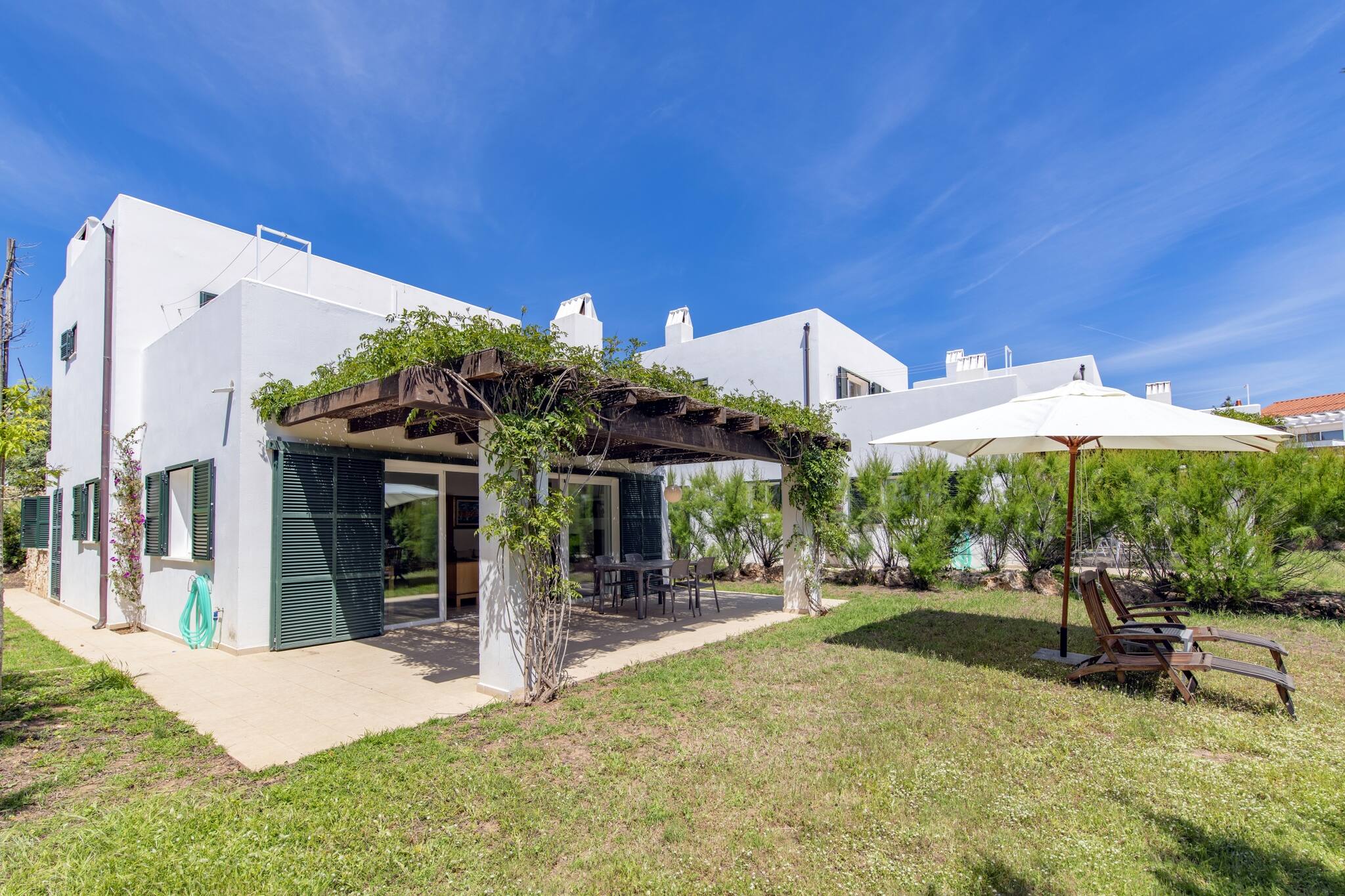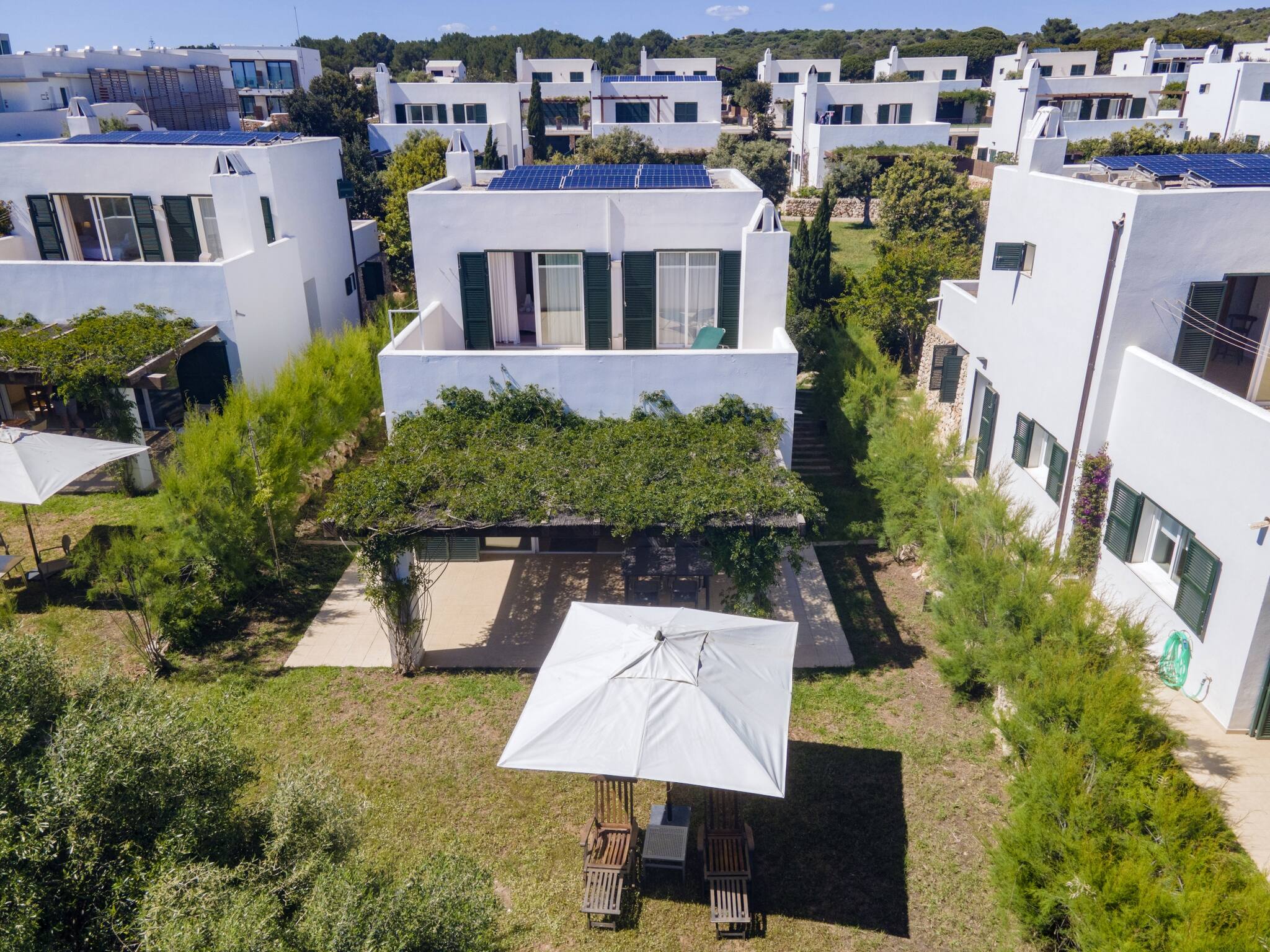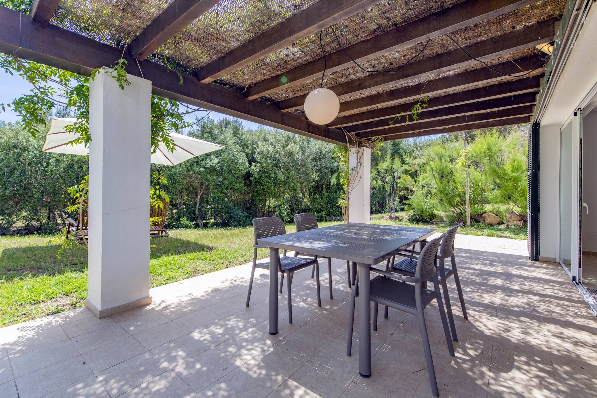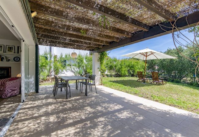 This elegant independent villa is part of an exclusive private complex composed of three villas, which share a spacious garden and swimming pool, offering a calm and well-maintained environment. It can be rented individually or, for larger groups, there is the possibility of renting two or even all three villas, maintaining comfort and privacy.