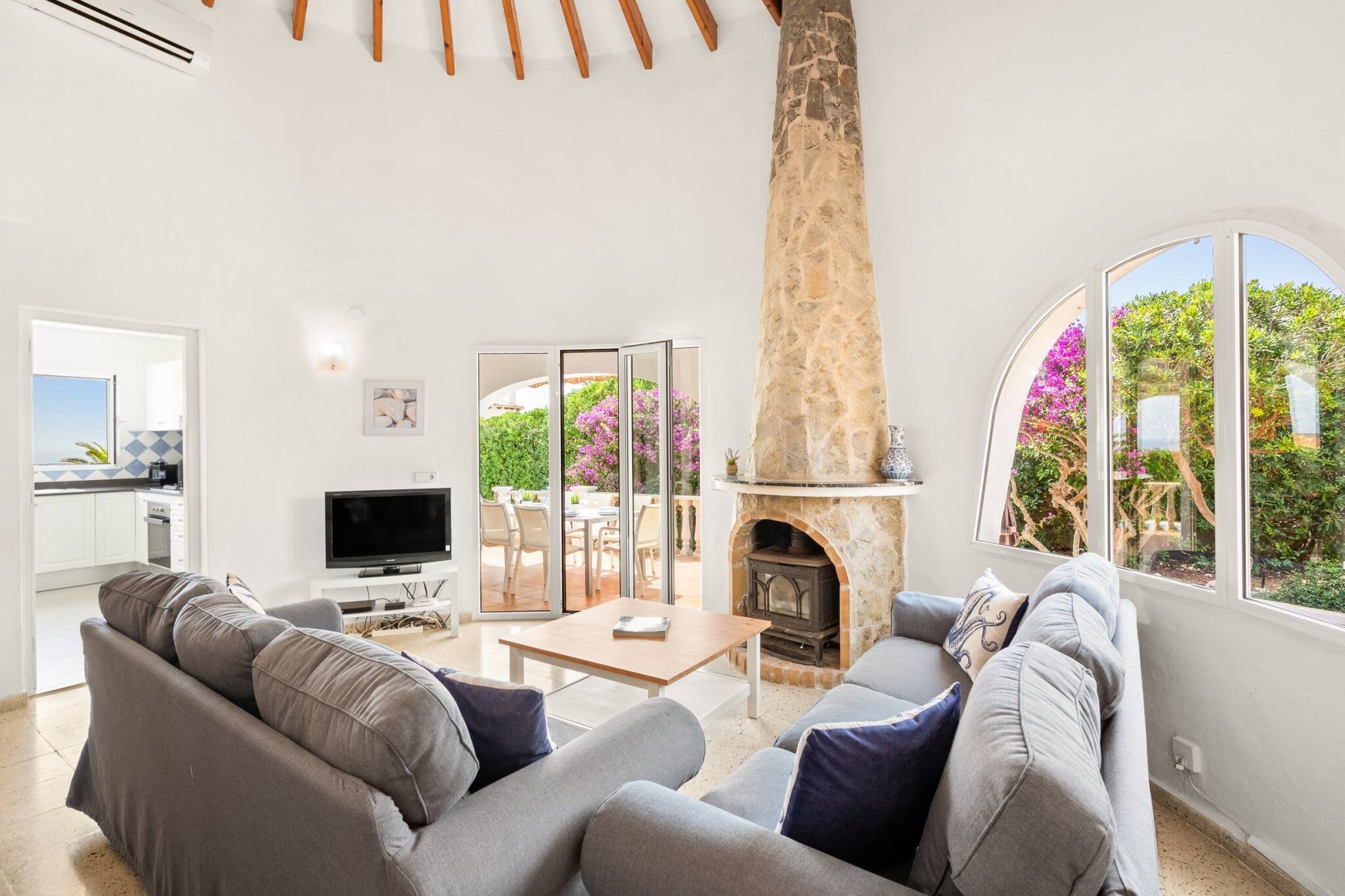 The villa has 4 bedrooms, including two spacious double bedrooms with en-suite bathrooms, as well as an additional bathroom with an independent shower. It is equipped with WiFi, Smart TV and air conditioning throughout the property, ensuring comfort in any season. Additionally, it has private parking within the property.