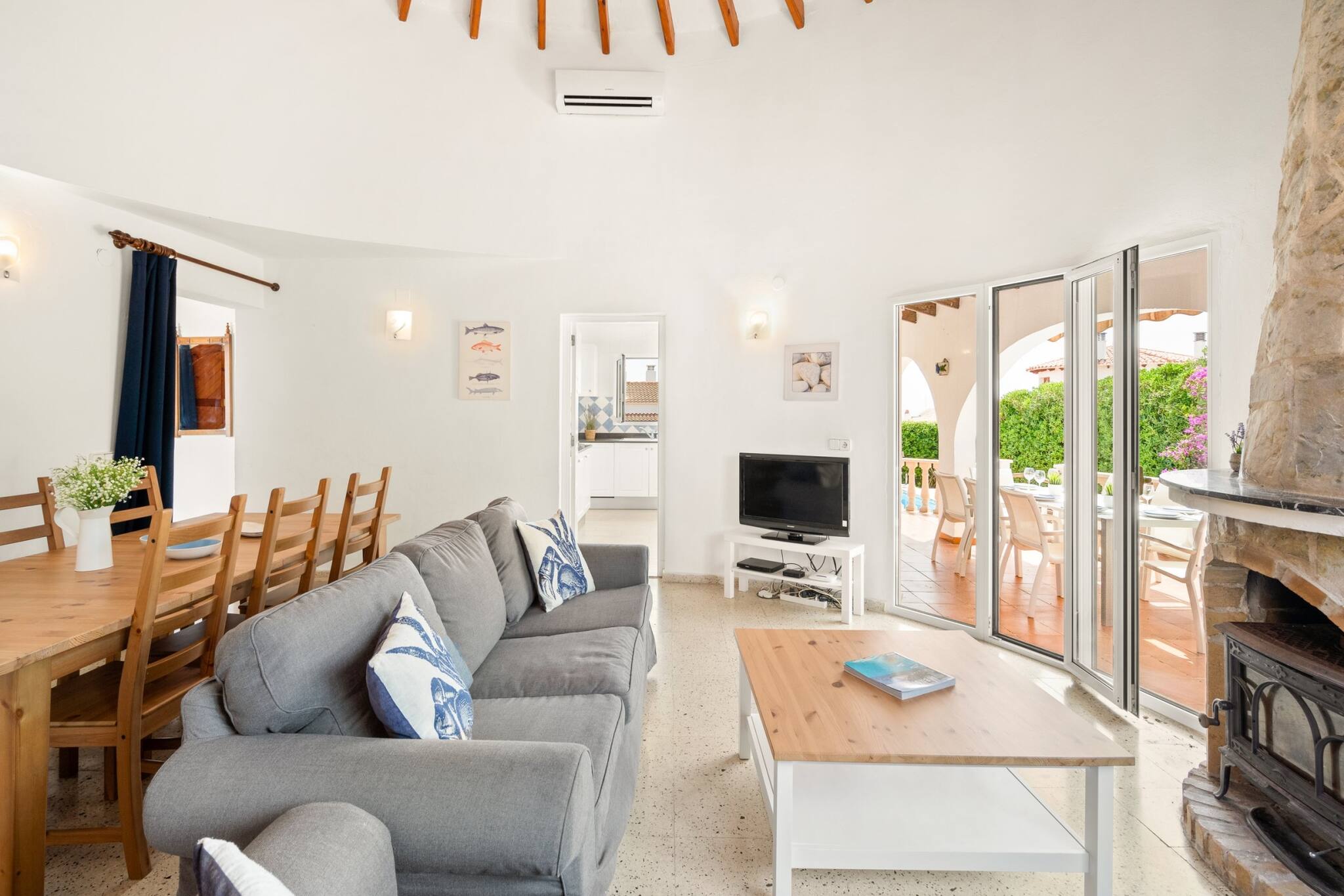 The rooms are equipped with hair dryers and GHD hair straighteners, taking care of every detail for a comfortable stay. The spacious living-dining room, with air conditioning and ceiling fans, offers an ideal space to rest from the day's heat, with comfortable sofas and satellite television.