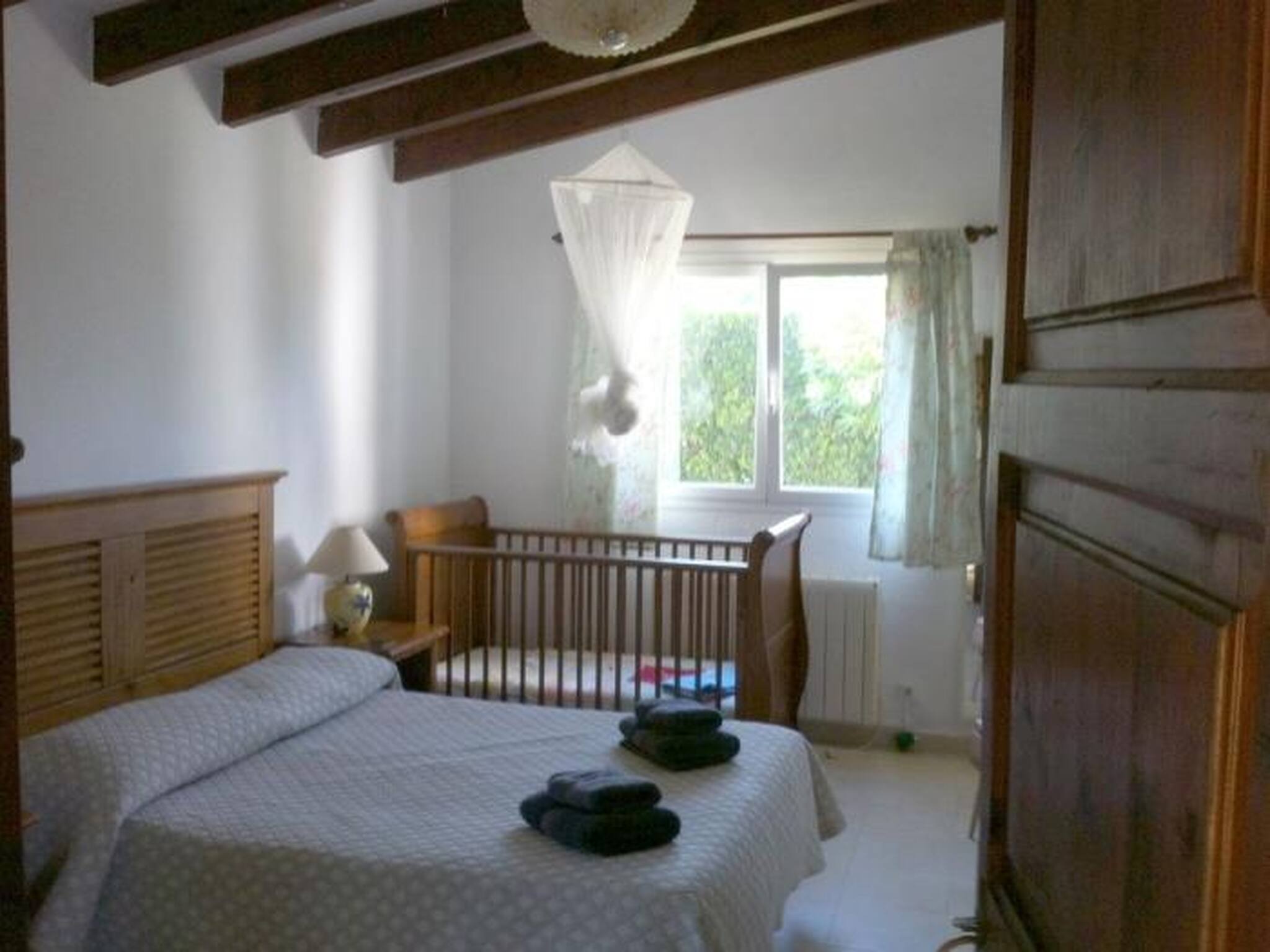La villa dispose de 4 chambres, dont deux grandes chambres doubles avec salle de bain attenante, ainsi qu'une salle de bain supplémentaire avec douche indépendante. Elle est équipée de WiFi, de Smart TV et de la climatisation dans toute la maison, garantissant le confort à toute époque de l'année. De plus, elle dispose d'un parking privé à l'intérieur de la propriété.
